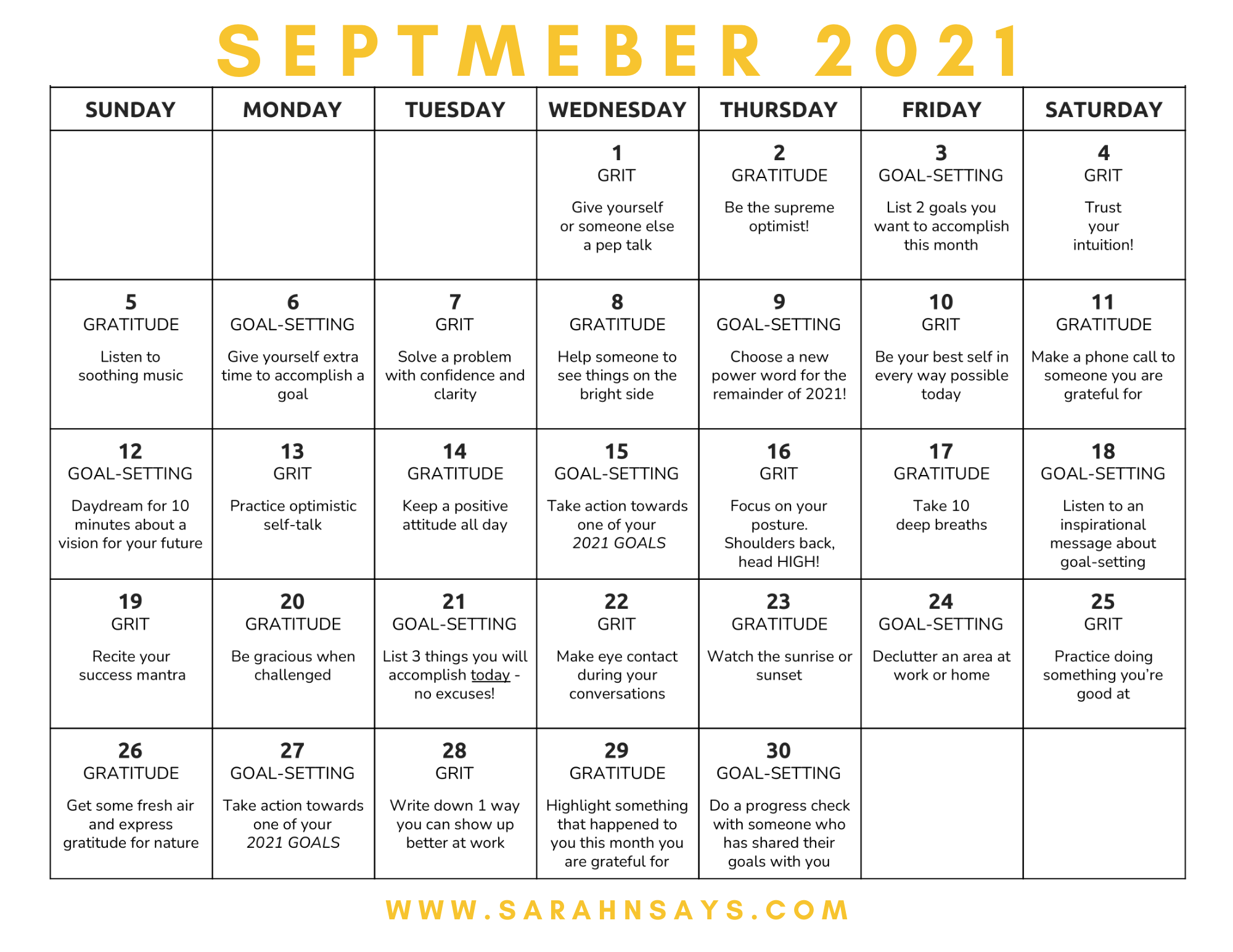 September 2021 Calendar ChallengeSarahn SaysAug 31, 20211 min readUpdated: Oct 1, 2021DOWNLOAD PNG DOWNLOAD PDF